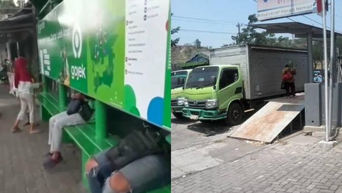 Ada halte bus yang dulunya dijadikan tempat pembuangan sampah hingga dijadikan pasar goncangan. Tak ayal, halte-halte tersebut membuat pengguna jalan salah konsentrasi.