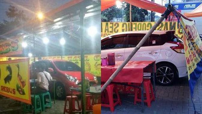 Bahkan ada antrean mobil yang parkir atau macet di warung pinggir jalan. Berada di sebuah warung, mobil tersebut ternyata merupakan barang yang dijual oleh pedagang.