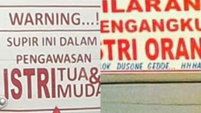 Beberapa truk boks menampilkan tulisan absurd dan kocak yang bisa membuat orang terkagum-kagum. Dari sekian banyak tulisan yang ada, beberapa di antaranya bahkan bisa membuat orang tertawa saat membacanya.