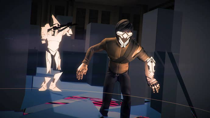 Maksud saya, itu semua adalah permainan TRON kecuali nama. Saya hampir menendang diri sendiri bahwa saya tidak melihatnya sebelumnya. Tapi katalog Bithell lainnya terbaca hampir seperti mood board dari ide-ide pitch Tron. Pertimbangkan Volume, ekstravaganza Metal Gear Solid-lite, neo-Robin Hood yang, setelah Thomas menempatkan Bithell di peta, memastikan bahwa dia akan tetap tinggal. Gaya seninya adalah, dan satu lagi saya menendang diri saya sendiri karena tidak mencatat waktu ini, TRON murni. Spandex, bagian yang berkilau, permukaan yang rata dan berbayang gouraud. Menampar beberapa sepeda motor futuristik di sana dan Disney mungkin memiliki alasan untuk tindakan hukum.
