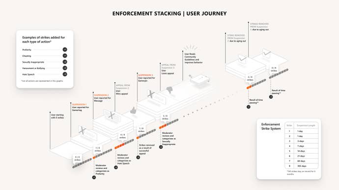 As explained in the detailed announcement on Xbox Wire, each number of strikes will get the player banned an appropriate amount of time. For instance, two strikes will earn you a one-day ban, and four brings that up to seven days.