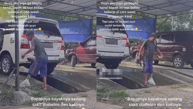 Bikin Salut Tapi Menyayat Hati, Seorang Pria Bungkus Kakinya yang Sakit dengan Plastik saat Kerja Cuci Mobil