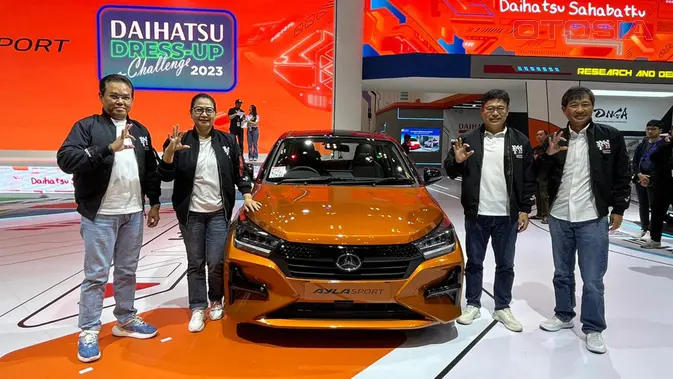 Daihatsu Ayla Sport menggunakan unit varian berbasis 1.2 R CVT berwarna orange. Dengan sentuhan two tone color atau 2 paduan warna orange metallic dan black metallic pada bodi mobil membuat tampilannya lebih sporty.