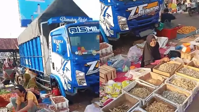 Hanya bisa pasrah, sopir ketiduran dan akhirnya truk diparkir di tengah pasar pedagang kaki lima