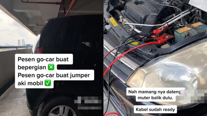 Beruntung sang sopir bersedia dan segera tiba di tempat mobilnya mogok. Seketika, jumper baterai dibuat antara mobil taksi online dan pemilik akun.