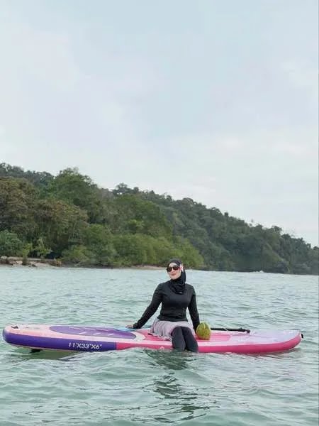 Dalam rangkaian foto yang diunggah di akun Instagram pribadinya, Ririe terlihat sangat menikmati suasana pantai selatan yang tenang. Salah satu momen yang paling menarik perhatian adalah saat ia bersantai di atas sebuah kano berwarna merah muda di atas air laut yang jernih.