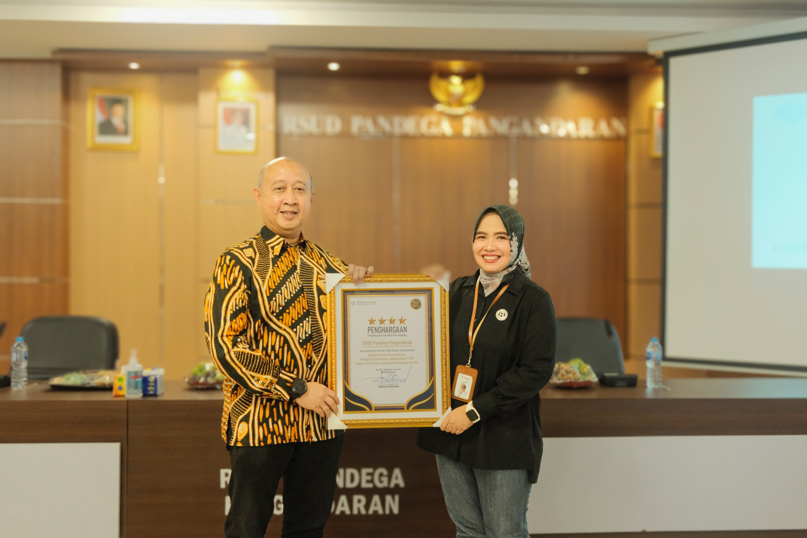 Penghargaan tersebut diberikan sebagai bentuk apresiasi atas keberhasilan RSUD Pandega Pangandaran dalam mengintegrasikan berbagai sistem digital, meliputi Sistem Antrian Online, Sistem Klaim Terpadu, E-SEP, Finger Print & FRISTA, serta Bridging Farmasi.