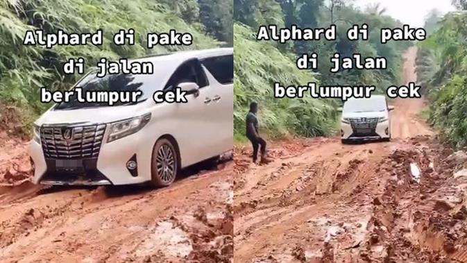 Sultan Mah Gratis! Toyota Alphard terpaksa melewati jalan rusak penuh lumpur
